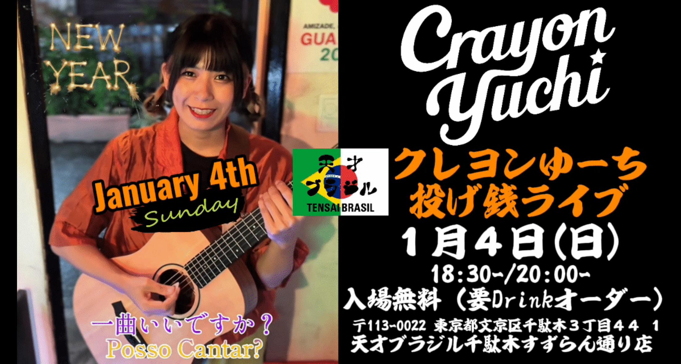 🟧夜:投げ銭ライブin天才ブラジル(千駄木)《①18:30〜/②20:00〜》予約受付中