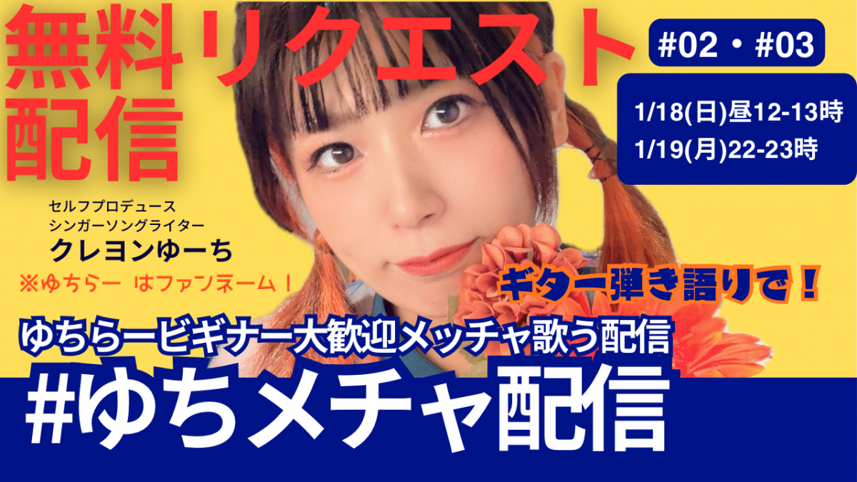 🟩1/18(日)昼12-13時《YouTube歌配信》#ゆちメチャ配信 02